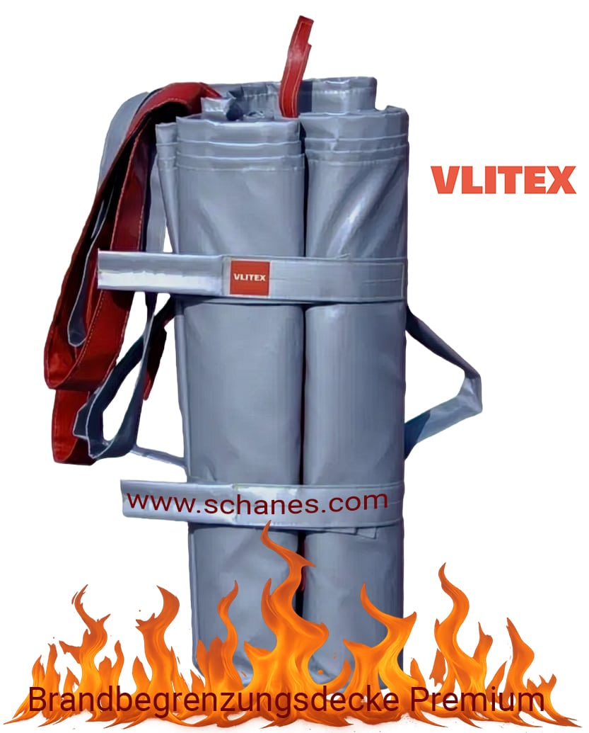 Die Vlitex Premium Brandbegrenzungsdecke E-Auto-48 (DIN SPEC 91489 zertifiziert) ist speziell für Akkubrände entwickelt und dient als zuverlässige Brandbegrenzungsdecke. Präventiv wird sie über ein verunfalltes Elektrofahrzeug gelegt, um im Brandfall die Umgebung wirksam zu schützen. Bei konventionellen Bränden arbeitet sie wie eine klassische Löschdecke und erstickt das Feuer schnell und zuverlässig.