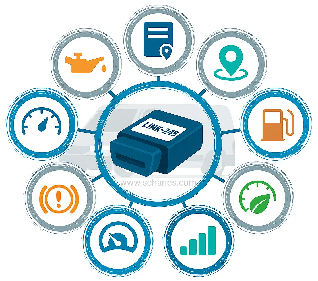 Der LINK 245 bietet eine unkomplizierte und zuverlässige Fahrzeugortung über die OBD2-Schnittstelle. Neben präziser Live-Position liefert das Gerät bei unterstützten Fahrzeugen den Echtkilometerstand, Wartungsinformationen sowie relevante Fahrzeugfehlercodes. Ideal für Unternehmen, die eine einfache, sofort einsatzbereite Lösung zur Überwachung und Verwaltung ihrer Fahrzeuge benötigen.